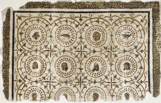 - Бестиарий: В медальонах и переплетениях лоз прячутся не только рыбы, но и вполне земные звери, и даже птицы. Артемида здесь явно приложила руку — посмотрите, как живой взгляд передается всего парой десятков мелких камешков (tesserae).